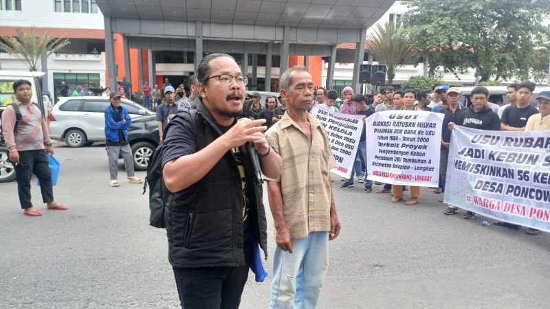 “Namun, hingga saat ini, janji tersebut belum dipenuhi. Lahan tersebut hingga kini terus dikuasai oleh USU tanpa adanya kompensasi apapun yang diterima oleh warga. Akibatnya, warga yang semula adalah petani pemilik lahan menjadi kehilangan mata pencariannya,” kata Aspipin Sinulingga dalam orasinya.