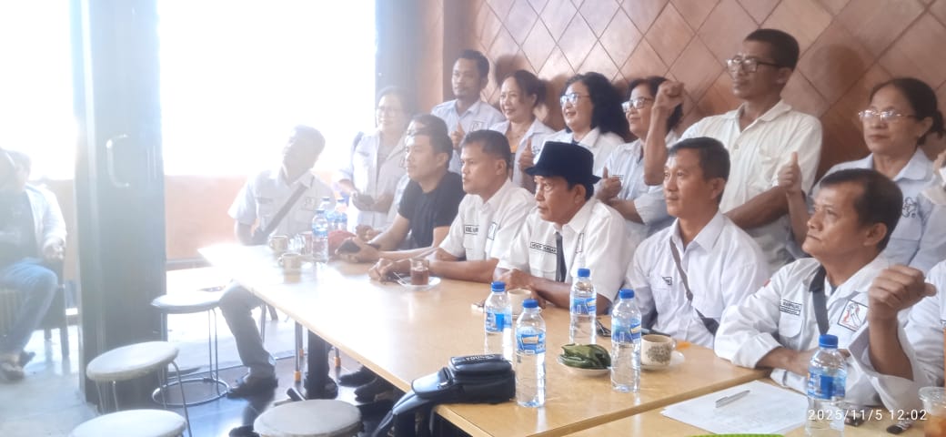 Nobel hanter marpaung Konprensipers di kantor Persaudaraan pedagang pasar bersatu (P3B) di pasar horas gedung dua lantai tiga kota pematangsiantar 5 nov 2025.