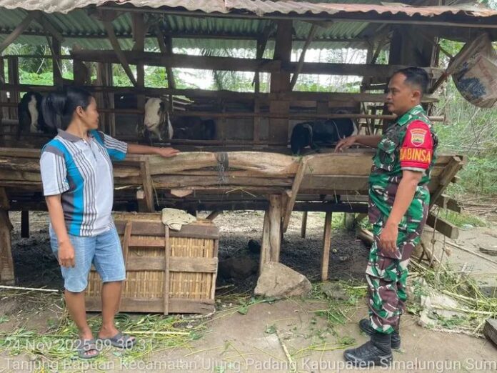 Simalungun | inidetik.com Dalam upaya mendukung kesejahteraan masyarakat serta menjaga ketahanan pangan di tingkat desa, Babinsa Koramil 07/Bosar Maligas Kodim 0207/Simalungun, Sertu Chairul Afandi, melaksanakan kegiatan Komunikasi Sosial (Komsos) bersama peternak kambing Ibu Sumini, pada Senin, 24 November 2025, di Nagori Tanjung Rapuan, Kecamatan Ujung Padang, Kabupaten Simalungun.