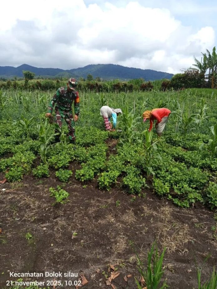 Dalam suasana pagi yang sejuk di Nagori Dolok Mariah, Kecamatan Dolok Silau, Serda Samosir ikut turun langsung membantu membersihkan gulma pada tanaman tumpang sari milik warga, yaitu Ibu Jernita Purba. Kegiatan ini dilakukan sebagai bagian dari komunikasi sosial (komsos) yang rutin dilakukan Babinsa di wilayah binaan.