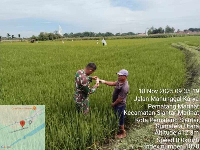 Pematangsiantar | inidetik.com Babinsa Koramil 03/Siantar Selatan Kodim 0207/Simalungun, Koptu Winky Gunawan, melaksanakan komunikasi sosial (komsos) dengan salah satu tokoh masyarakat dan petani, Bapak H. Simanjuntak, pada Selasa (18/11/2025) di Kelurahan Pematang Marihat, Kecamatan Siantar Marimbun, Kota Pematang Siantar.