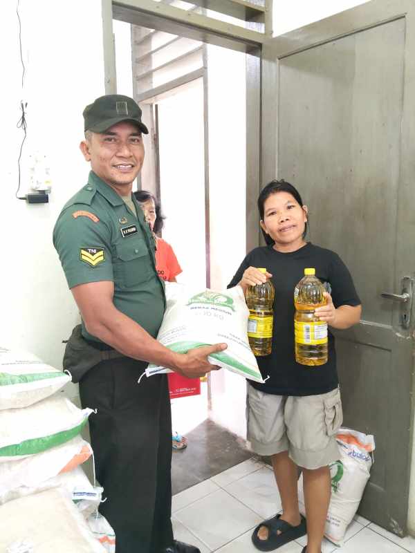 Dalam kegiatan tersebut, Sertu H.R. Pasaribu turut memastikan proses penyaluran berjalan tertib, transparan, dan tepat sasaran. Kehadiran Babinsa juga memberikan rasa aman bagi warga yang datang bergiliran untuk mengambil bantuan.