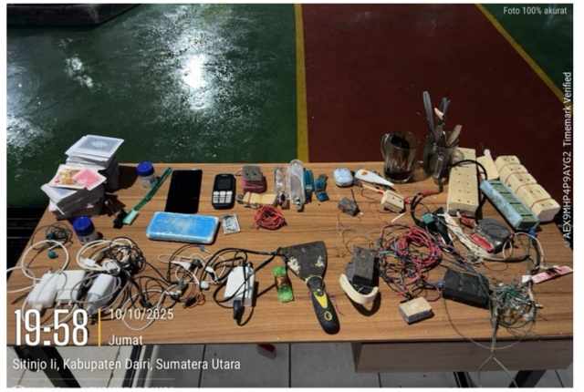 Sidikalang, Sumatera Utara I inidetik.com Dalam rangka menjaga situasi kondusif dan juga bentuk komitmen dalam mewujudkan Zero Halinar di lingkungan Rumah Tahanan Negara Kelas llB Sidikalang, petugas kembali melaksanakan razia mendadak dengan melakukan penggeledahan di sejumlah kamar hunian warga binaan, Jumat (10/10/2025).