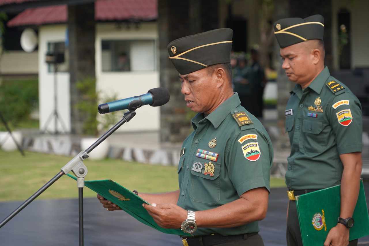 Komandan Korem 022/PT, Kolonel Inf Sandi Kamidianto, S.I.P., M.I.P., bertindak sebagai inspektur upacara sekaligus membacakan amanat Menteri Pemuda dan Olahraga (Menpora) Erick Thohir.