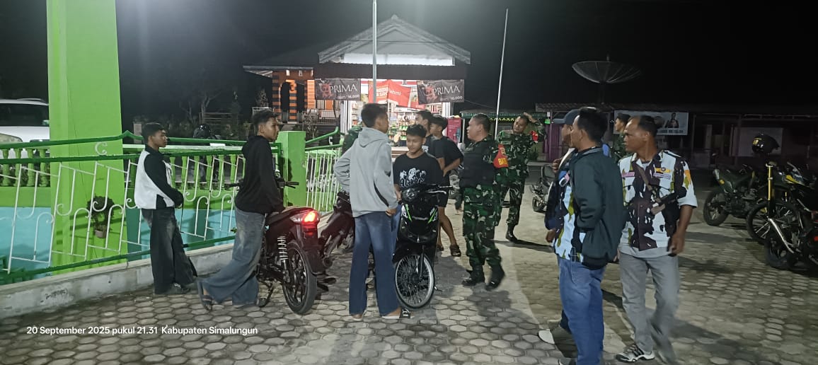 Simalungun I inidetik.com Suasana malam akhir pekan di Kecamatan Jorlang Hataran dan Kecamatan Dolok Panribuan, Kabupaten Simalungun, terasa lebih teduh dan aman berkat kehadiran patroli gabungan yang digelar Koramil 09/Tiga Balata Kodim 0207/Simalungun bersama Komponen Pendukung Ikatan Pemuda Karya (IPK), Sabtu (20/9/2025) malam.