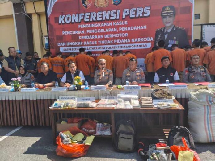 PEMATANGSIANTAR I inidetik.com Satuan Narkoba (Satnarkoba) dan Satuan Reserse kriminal (satreskrim) Polres Pematangsiantar menggelar kegiatan press release pengungkapan berbagai kasus tindak pidana, di halaman apel Mapolres Pematangsiantar, Rabu (29/10/2025) pukul 09.30 WIB.