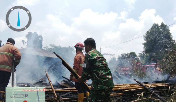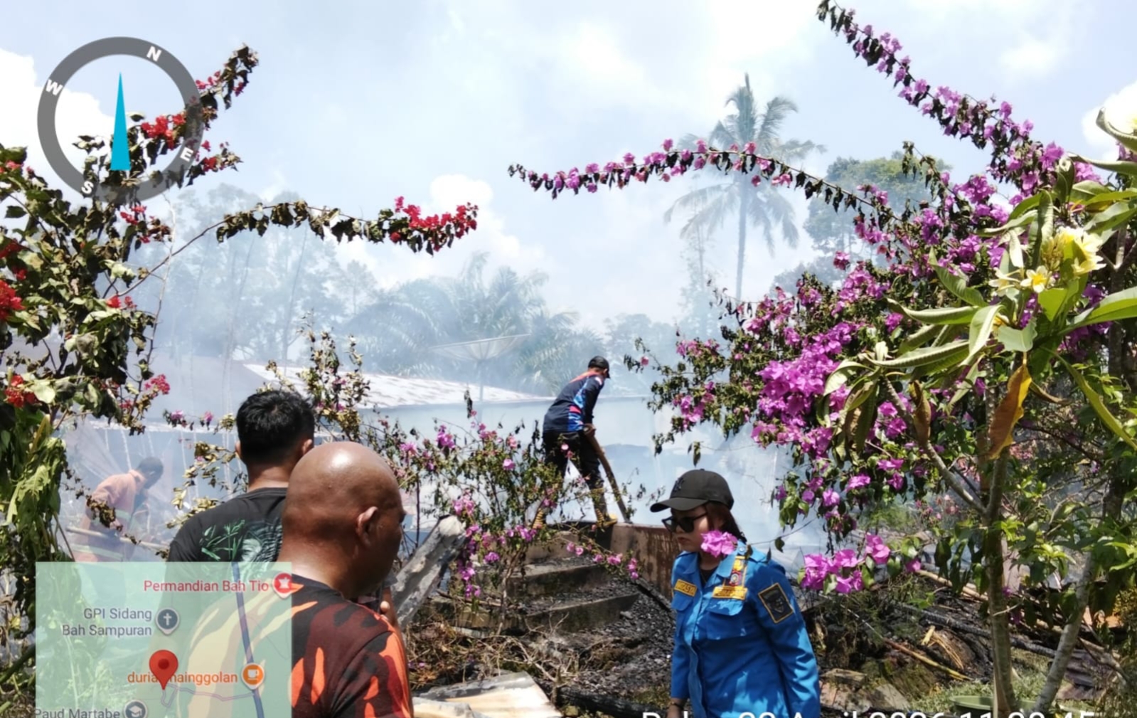 Simalungun, Inidetik.com – Aksi cepat dan kepedulian terhadap keselamatan warga kembali ditunjukkan oleh aparat TNI di wilayah. Serda Akino G. Situmorang, Babinsa Koramil 09/Tiga Balata Kodim 0207/Simalungun, bersama personel pemadam kebakaran dan masyarakat setempat bahu-membahu memadamkan kebakaran yang terjadi di Dusun Hinalang, Nagori Pagar Pinang, Kecamatan Jorlang Hataran, Kabupaten Simalungun, Rabu (22/4/2026).